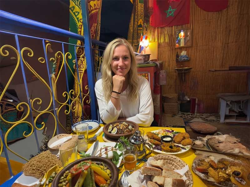 And here’s what I really appreciate about this setup—the service is laid-back and thoughtful, not rushed. You get the full 3 hours dinner experience without anyone trying to hurry you out the door. Everything from Moroccan salads and saffron chicken tagine to international and fish options—but it’s curated, not overwhelming. Bottom line? It’s simple, thoughtfully put together, and designed to feel effortless—pickup included, dinner, the ride back home. MoroccoPlan’s got you covered from start to finish.