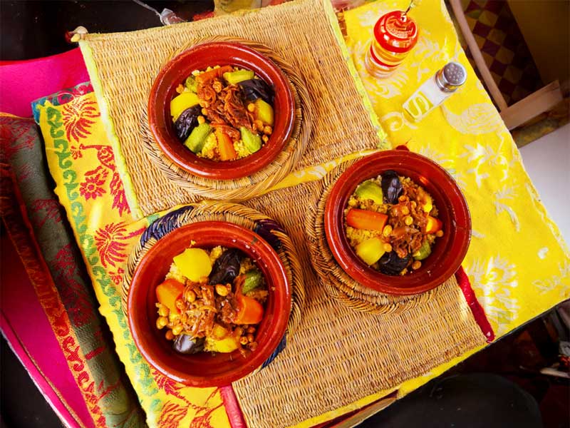 Over the course of the meal, you settle in for the full 2.5 hours dinner experience, with time to talk, taste, and soak up the vibe. You've got three clear paths: Moroccan, International, or Fish. Maybe you go Moroccan with salads, saffron chicken tagine, and orange salad; or try the international route with beef fillet and chocolate mousse; or follow the fish path with fish soup, sole en papillote, and dessert like apple tart or crème brûlée.